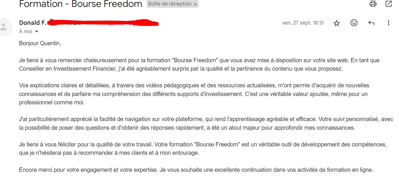 Donald, conseiller en gestion de patrimoine : "En tant que conseiller en investissement financier, j'ai été agréablement surpris par la qualité et la pertinence du contenu. Je n'hésiterai pas à le recommander à mes clients et à mon entourage"